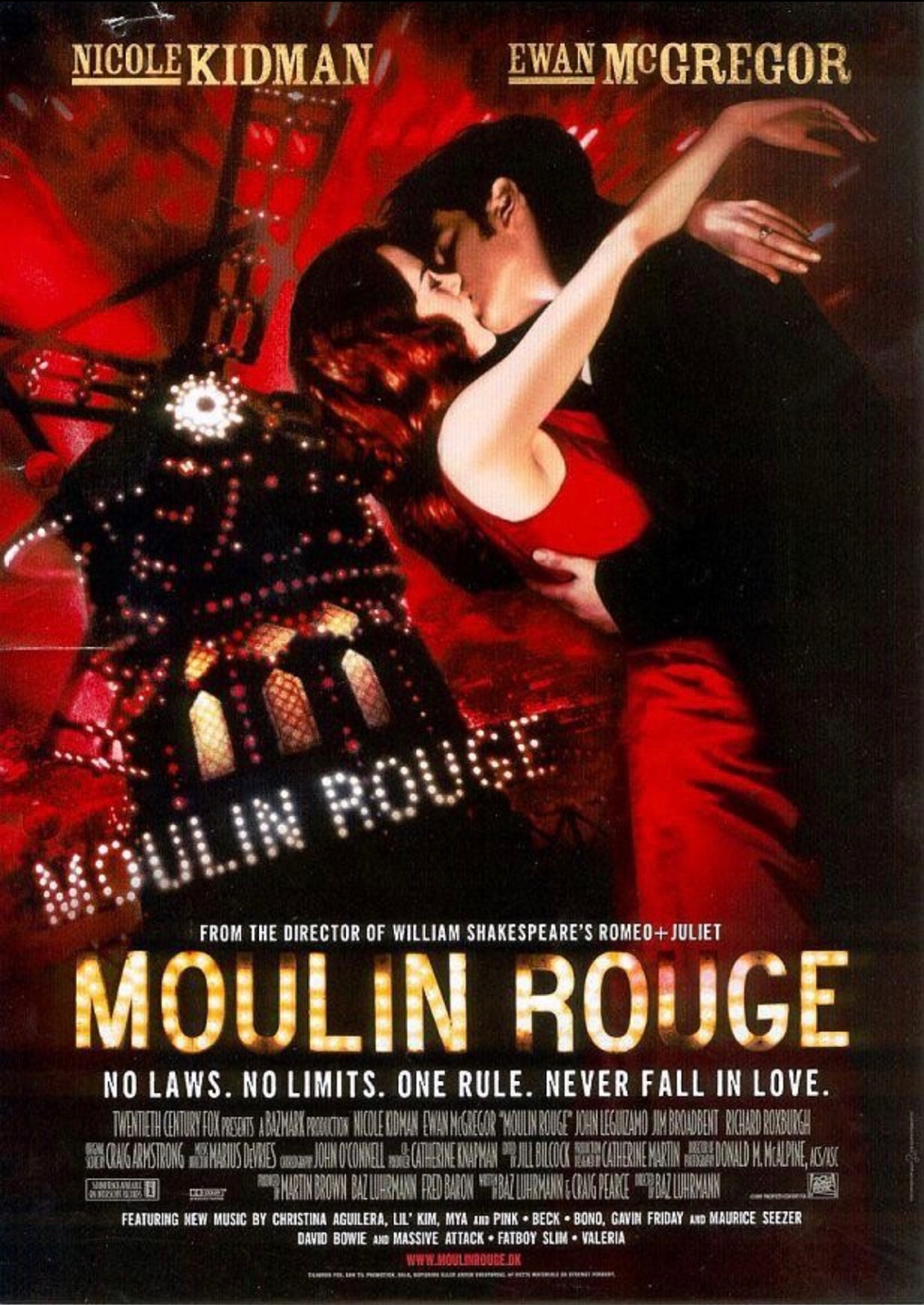 물랑루즈는 2001년 배즈 루어먼 감독이 연출한 뮤지컬 영화입니다. 영화가 흥행해서 물랑루즈 뮤지컬까지 제작되기도 했습니다. 니콜 키드먼과 이완 맥그리거가 출연했습니다.